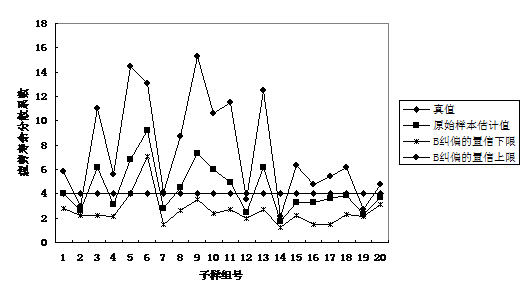 。隨機(jī)抽取容量為5、10和15的子樣各20組,與文獻(xiàn)[1]采用相同的可靠度和置信度要求,即可靠度