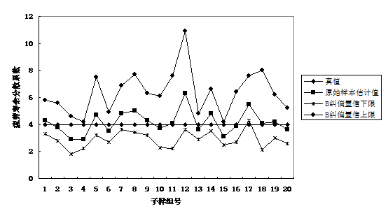 圖9.2 各種不同方法計(jì)算的20組容量為10的子樣的疲勞分散系數(shù)